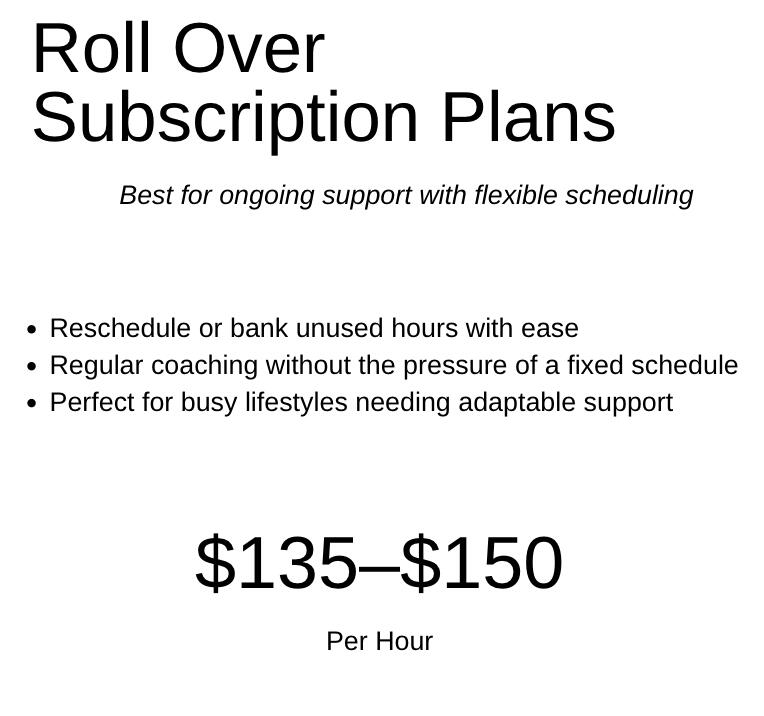 Ideal if you want control over when and how you receive coaching—no fixed schedule, just pay for the hours you use.